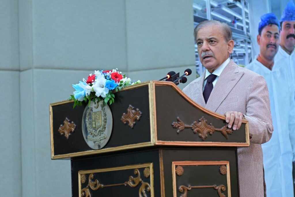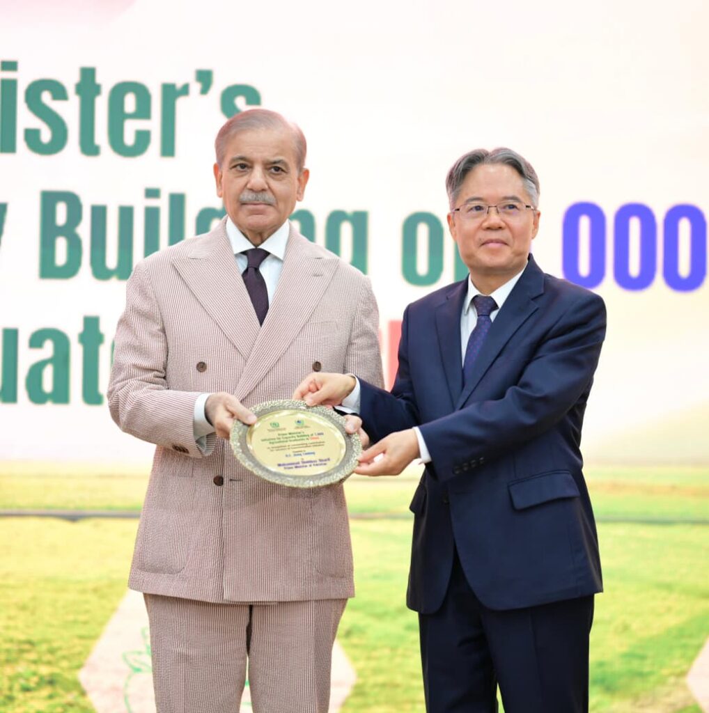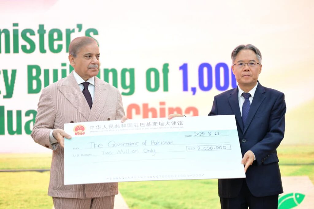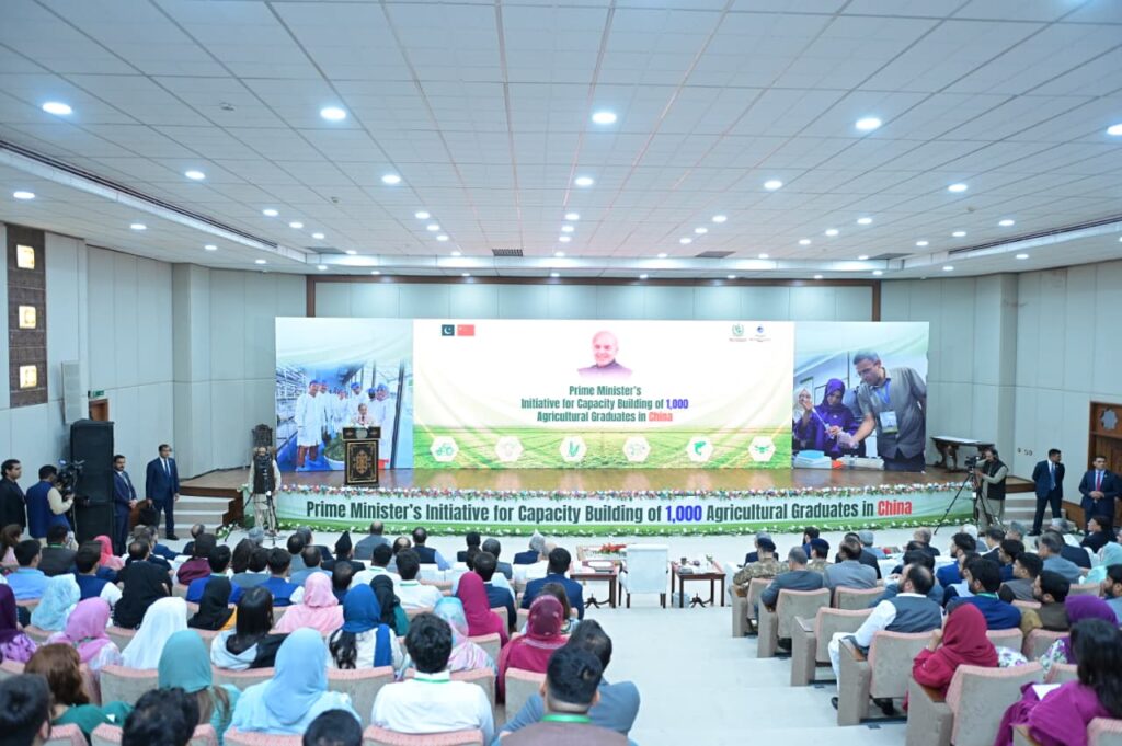 Prime Minister Muhammad Shehbaz Sharif addresses the ceremony of Prime Minister’s capacity building initiative of 1000 agricultural graduates in China, in Islamabad on 22 August 2025.